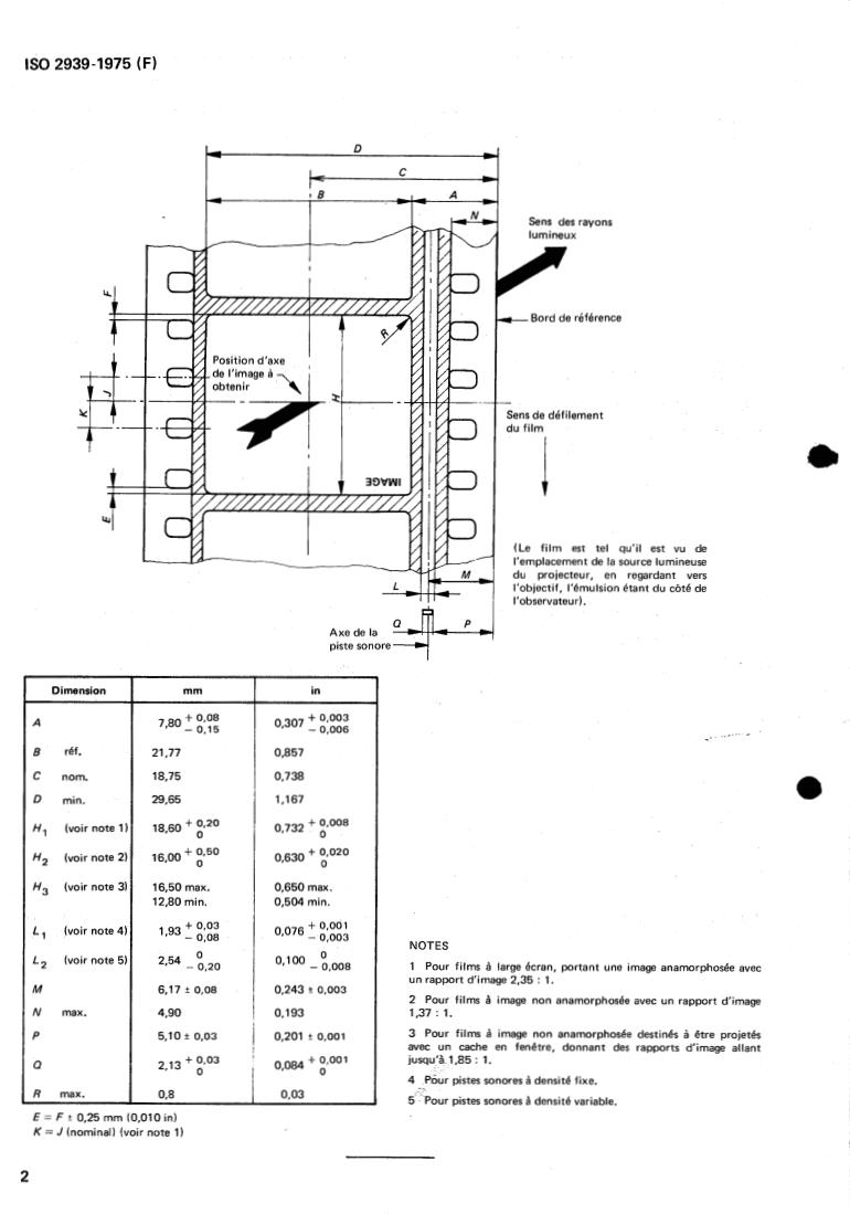 ISO 2939:1975 is a standard published by the International Organization for Standardization (ISO). Its full title is "Cinematography — Picture image area and photographic sound record on 35 mm motion-picture release prints — Positions and dimensions". This standard covers: Cinematography — Picture image area and photographic sound record on 35 mm motion-picture release prints — Positions and dimensions