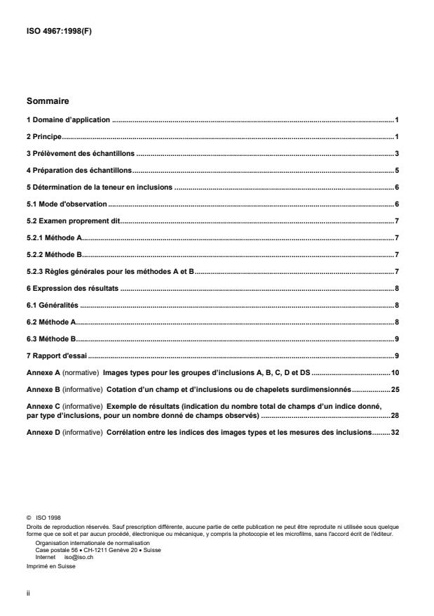 ISO 4967:1998 - Aciers -- Détermination de la teneur en inclusions non métalliques -- Méthode micrographique a l'aide d'images types