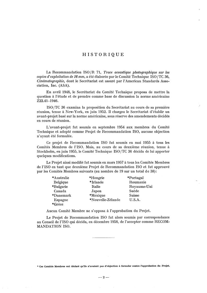 La Recommandation IS0 /R 71, Trace acoustique phofographique sur les