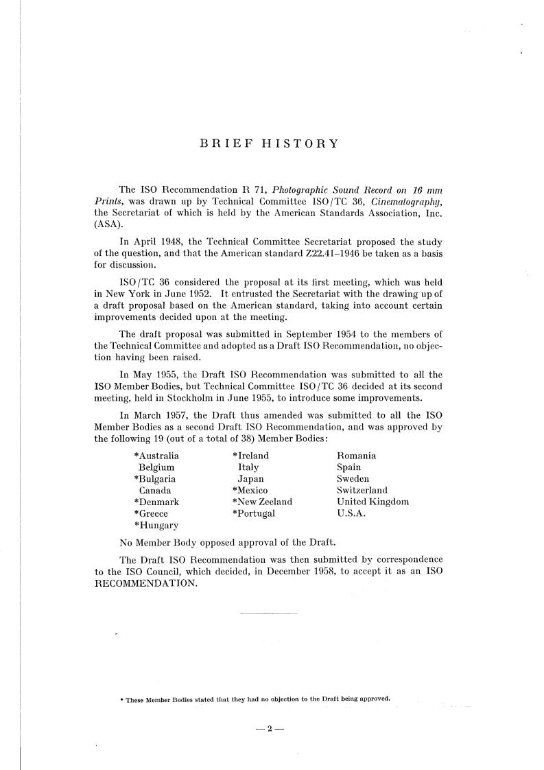 Ce projet de Recommandation IS0 fut soumis en mai 1955 à tous les