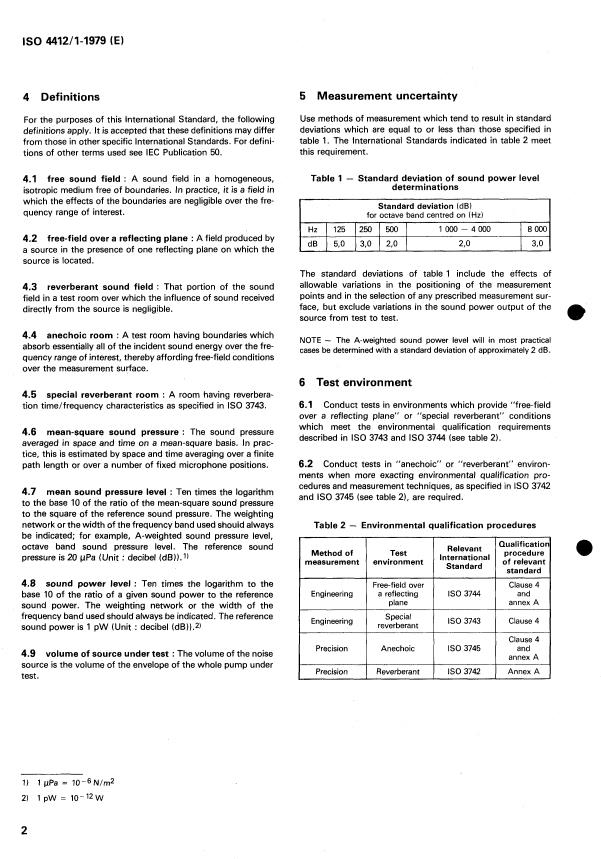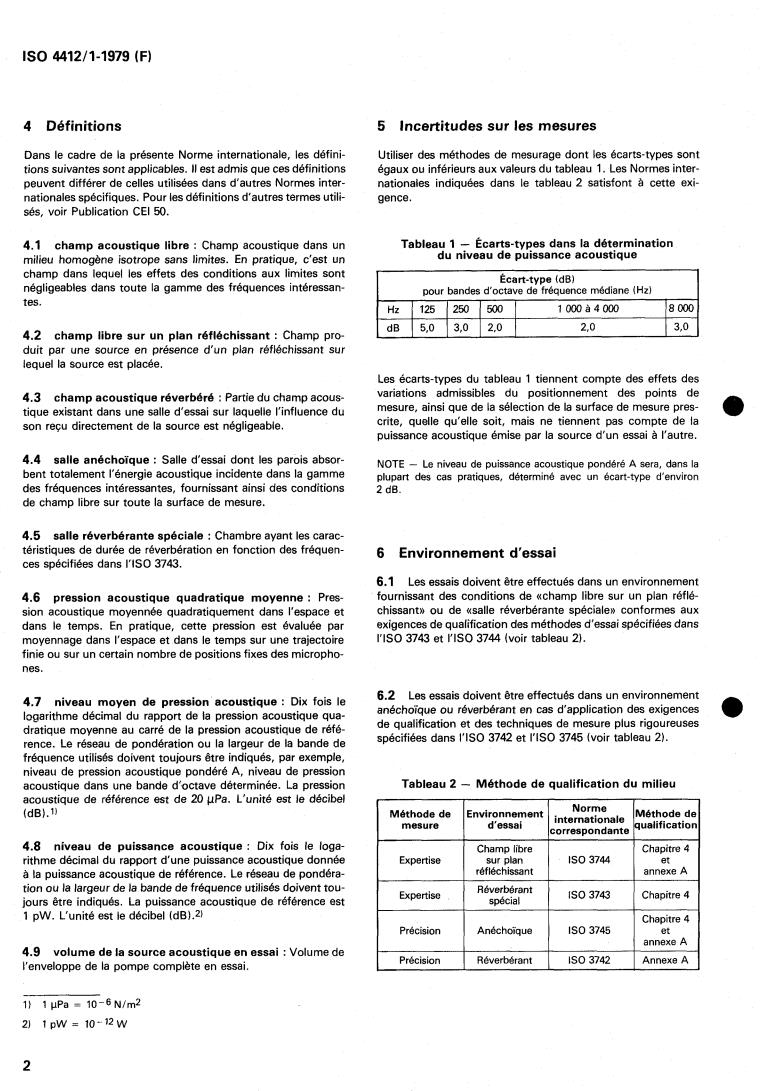 I'ISO 3743 et I'ISO 3744 (voir tableau 2).