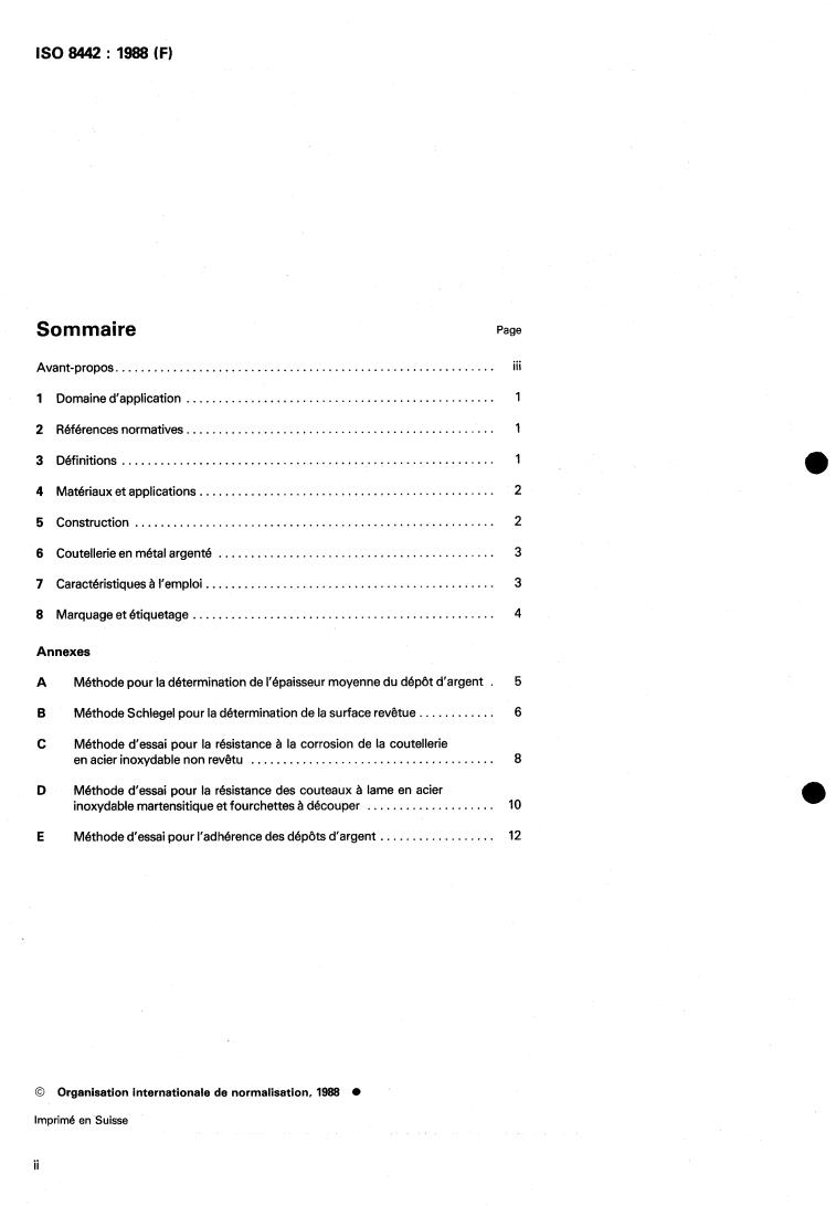 ISO 8442:1988 is a standard published by the International Organization for Standardization (ISO). Its full title is "Stainless steel and silver-plated table cutlery — Requirements". This standard covers: Stainless steel and silver-plated table cutlery — Requirements