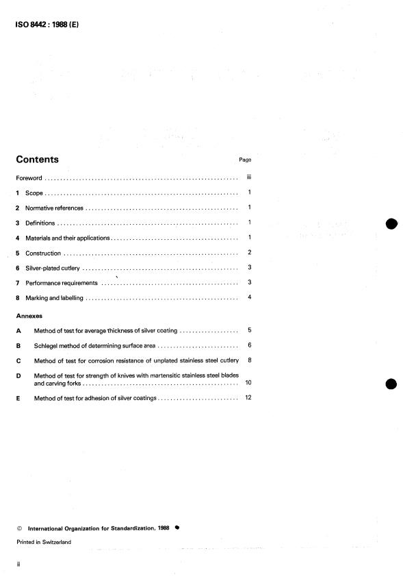 ISO 8442:1988 - Stainless steel and silver-plated table cutlery — Requirements Released:12/1/1988