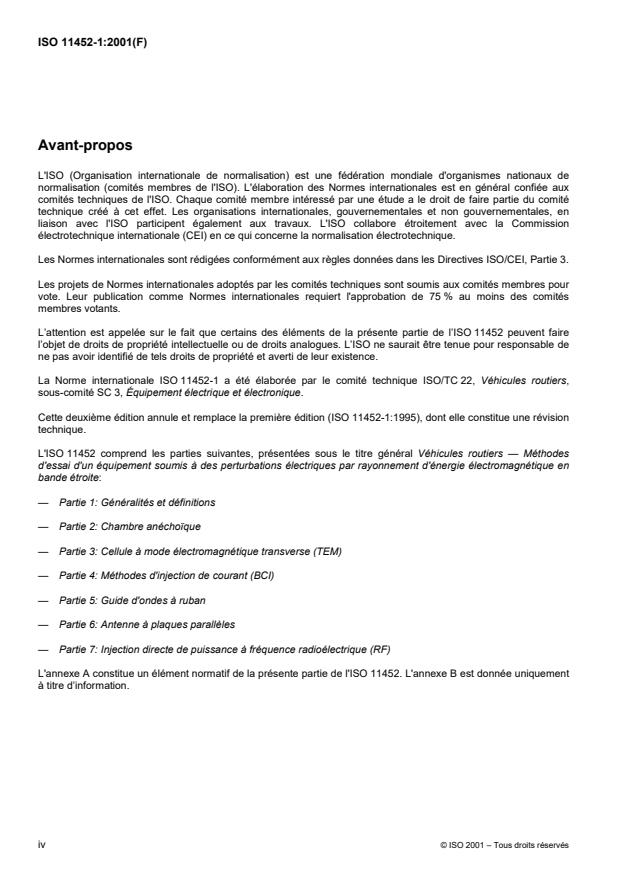 spécifiés dans l'ISO 11452 sont destinés à faciliter la spécification des équipements vis-à-vis des perturbations