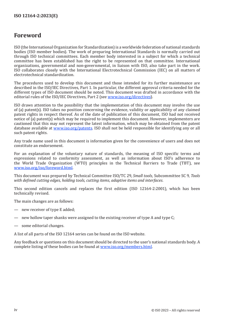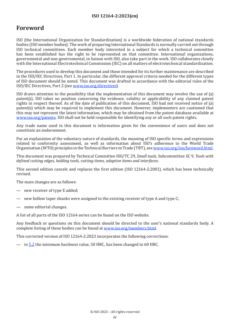 ISO 12164-2:2023 - Hollow taper interface with flange contact surface — Part 2: Receivers of types A, C and E for hollow taper shanks of types A, AB, C, CB and EB Released:9/12/2024