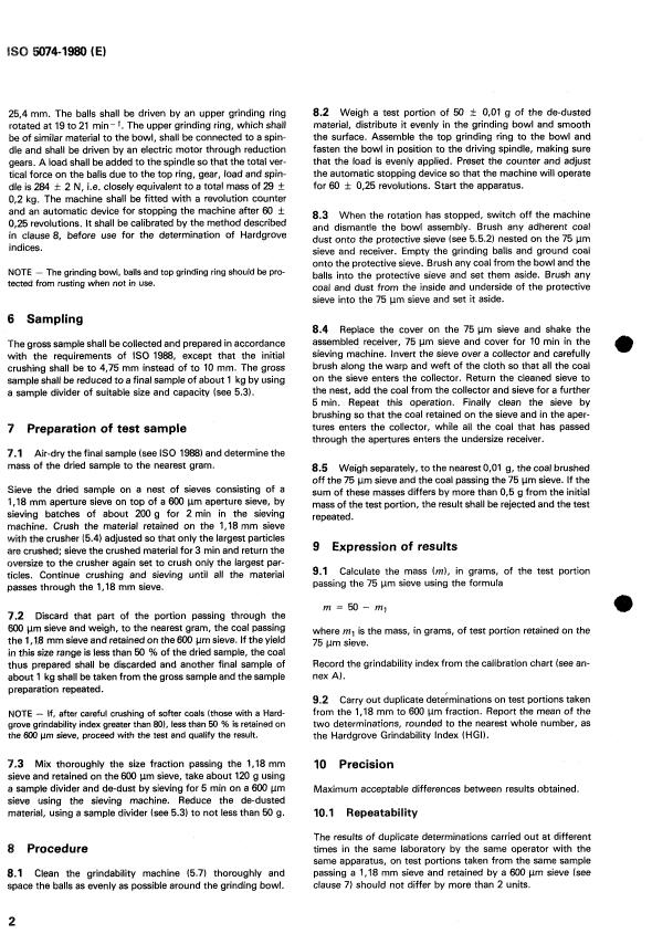 ISO 5074:1980 is a standard published by the International Organization for Standardization (ISO). Its full title is "Hard coal — Determination of Hardgrove grindability index". This standard covers: Hard coal — Determination of Hardgrove grindability index