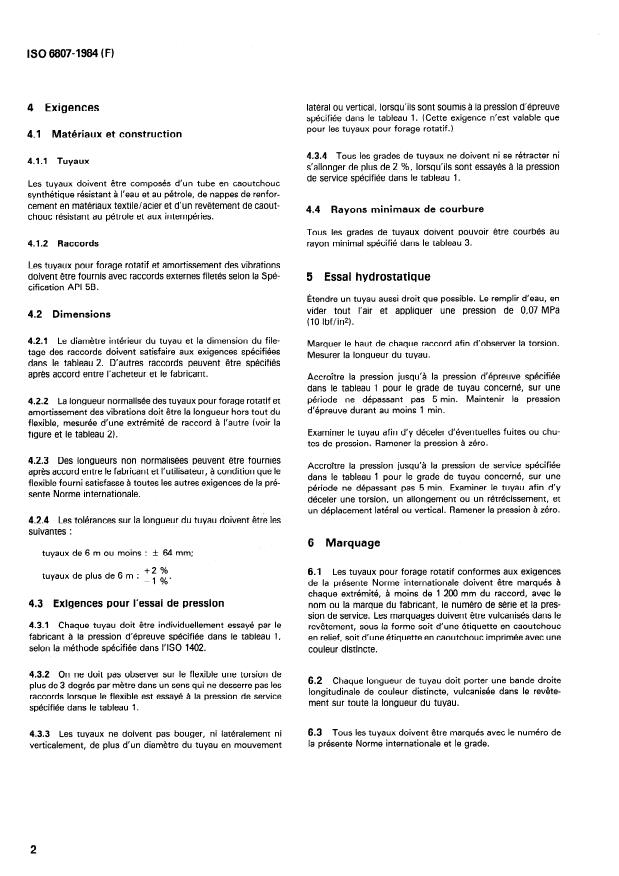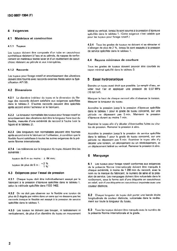 ISO 6807:1984 - Tuyaux et flexibles en caoutchouc pour forage rotatif et amortissement des vibrations -- Spécifications