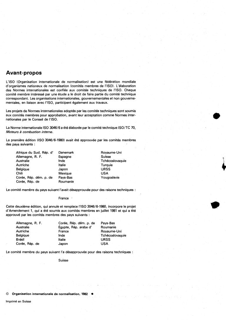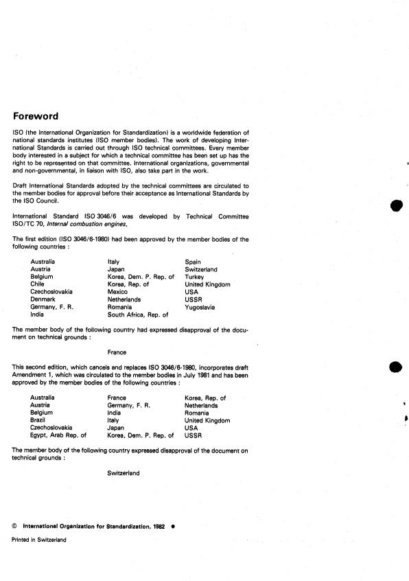 La première édition (IS0 3046/6-1980) avait été approuvée par les comités membres