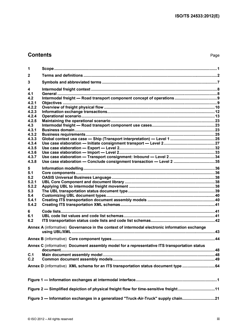 Keywords: ISO/TS 24533:2012, intelligent transport systems, intermodal freight, electronic information exchange, road transport information exchange, UBL, XML, transport data, consignment, supply chain.