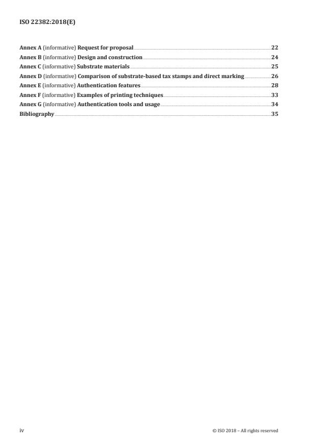 The standard also contains informative annexes (RFP templates, design and construction guidance, substrate comparisons, printing techniques and authentication tools) to support practical implementation.