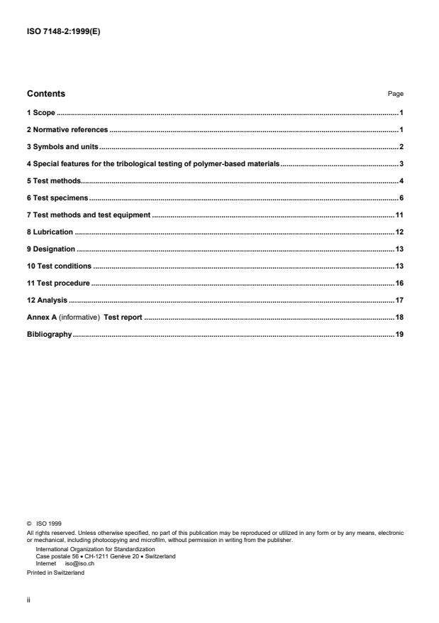 ISO 7148 consists of the following parts under the general title Plain bearings — Testing of the tribological