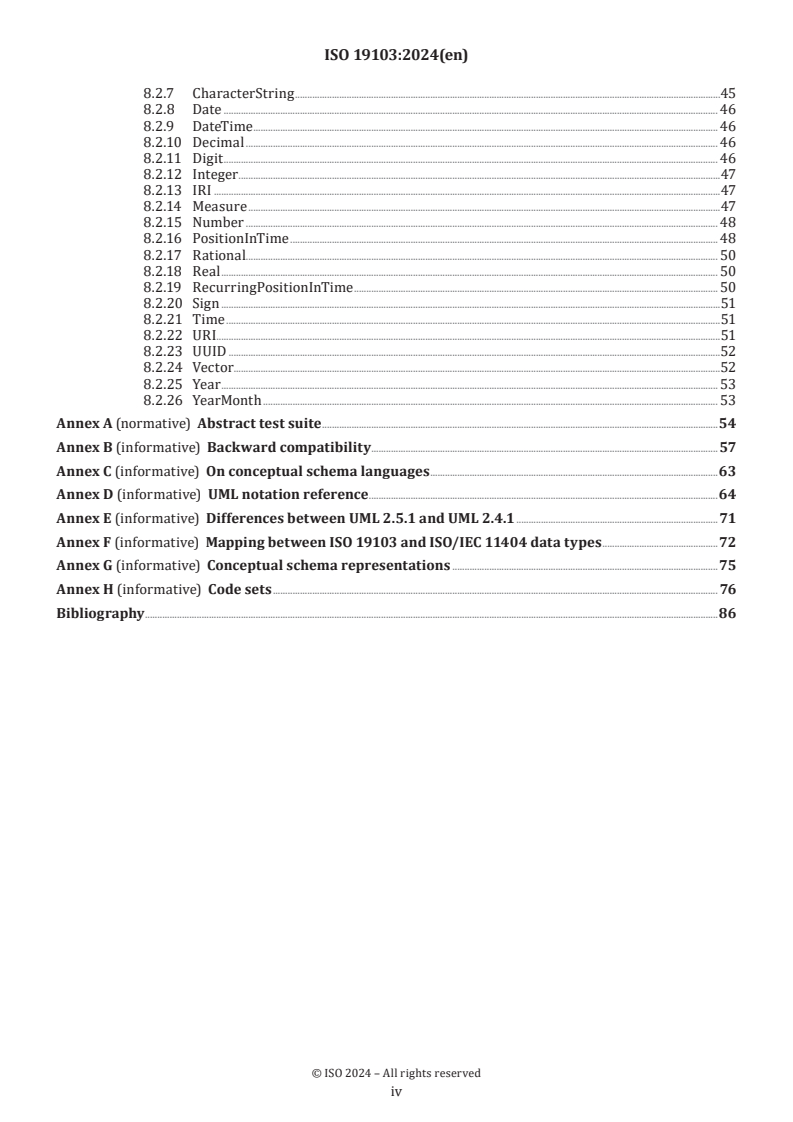- Interoperability considerations: Mapping relations to ISO/IEC 11404 and informative annexes on backward compatibility, UML notation and conceptual schema representations.