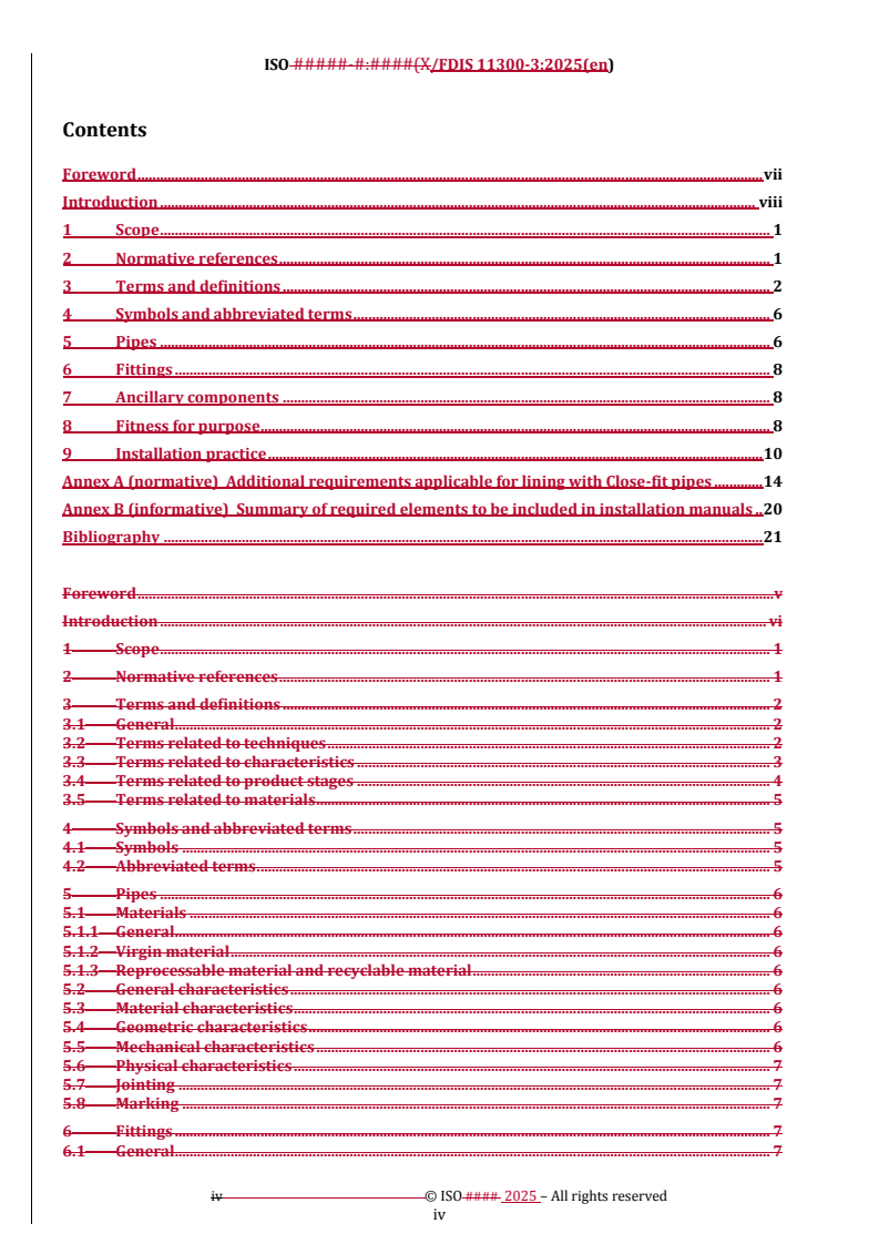 REDLINE ISO/FDIS 11300-3 - Piping systems for rehabilitation of underground drains, sewers and water supply networks — Part 3: Unplasticized poly (vinyl chloride) (PVC-U) material Released:22. 10. 2025