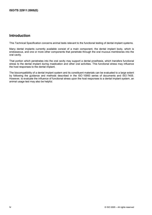 ISO/TS 22911:2005 - Dentistry -- Preclinical evaluation of dental implant systems -- Animal test methods
