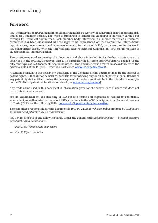 ISO 18418-1:2014 is a standard published by the International Organization for Standardization (ISO). Its full title is "Gasoline engines — Medium pressure liquid fuel supply connections — Part 1: 60° female cone connectors". This standard covers: ISO 18418-1:2014 specifies the dimensional requirements of medium-pressure pipe end-connections for gasoline (spark-ignition) engine fuel injection equipment. It is applicable to externally threaded end-connections having a 60° female cone, as well as to the pipe end assemblies of medium-pressure fuel injection pipes with outside diameters of up to and including 10 mm.