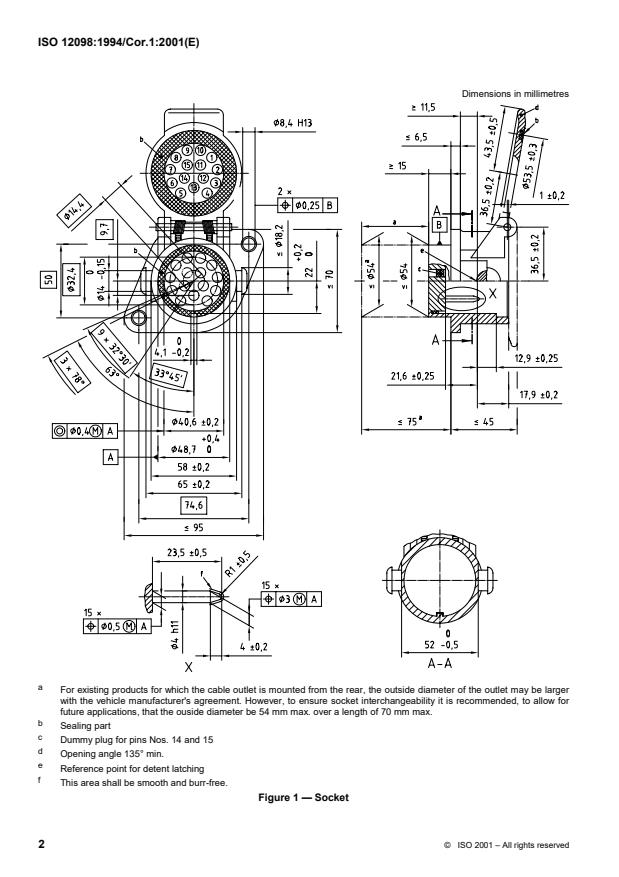Véhicules utilitaires équipés d'un système électrique 24 V — Connecteurs à 15 contacts pour liaison entre le véhicule tracteur et le véhicule tracté — Dimensions et affectation des contacts — Rectificatif technique 1