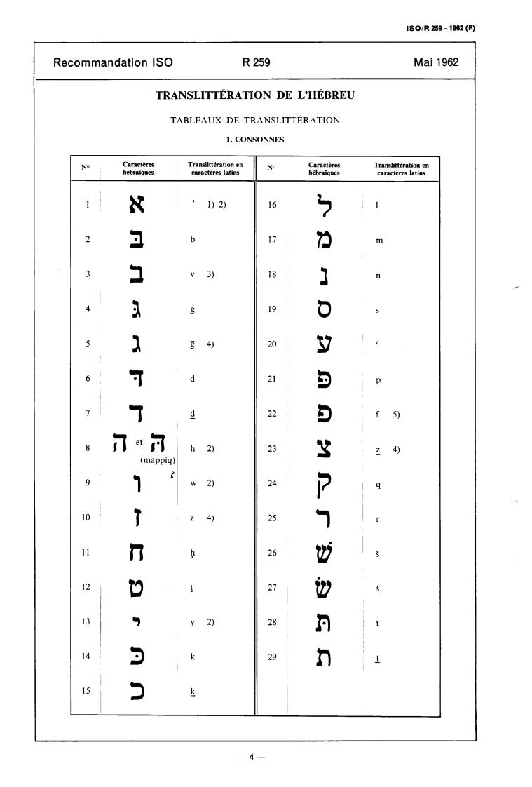 La Recommandation ISOiR 259, Translittération de l’hébreu, a été élaborée par le Comité