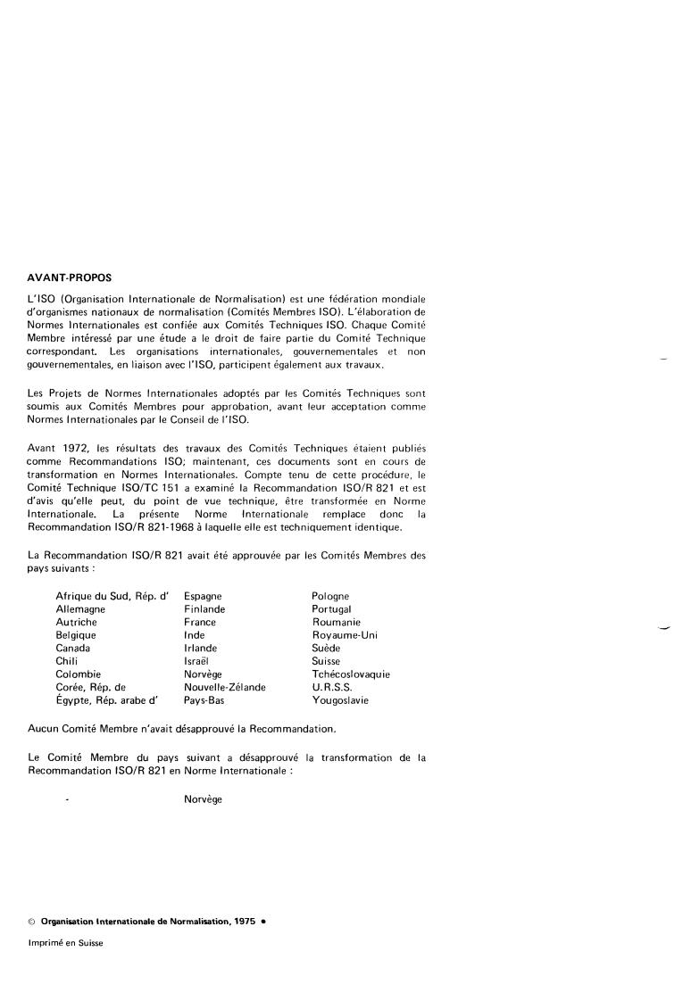 replaces IS0 Recommendation R 821-1968 to which it is technically identical.