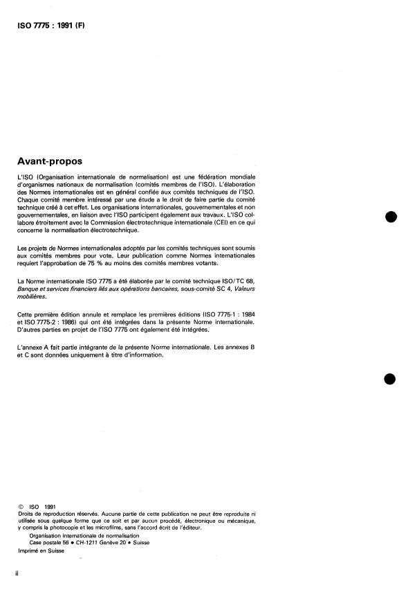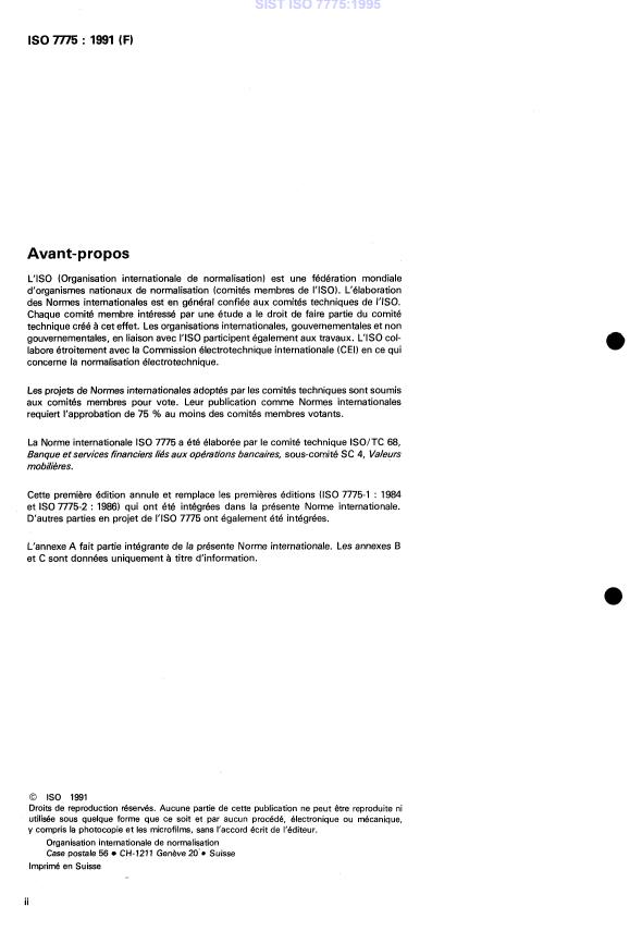 Cette première édition annule et remplace les premières éditions (IS0 7775-1 : 1984