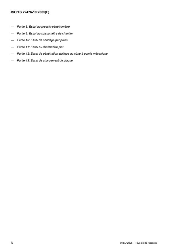 ISO/TS 22476 consists of the following parts, under the general title Geotechnical investigation and testing —
