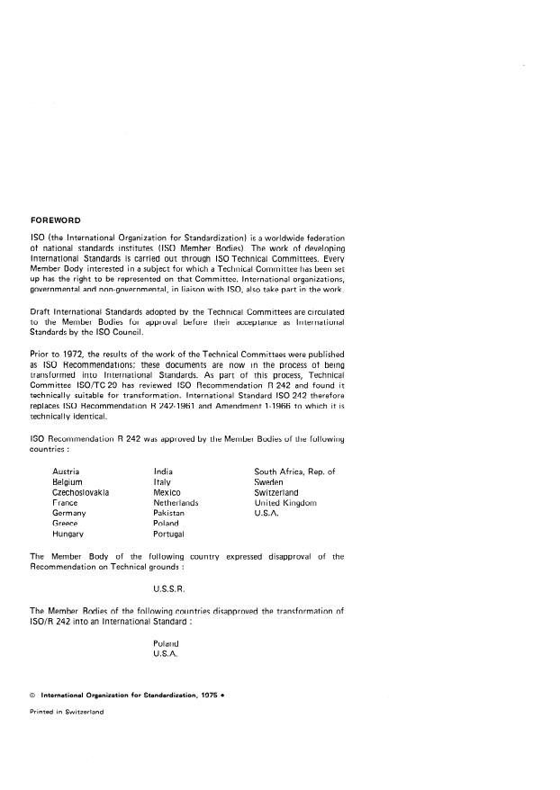 replaces ISO Recommendation R 242-1961 and Amendment 1-1966 to which it is