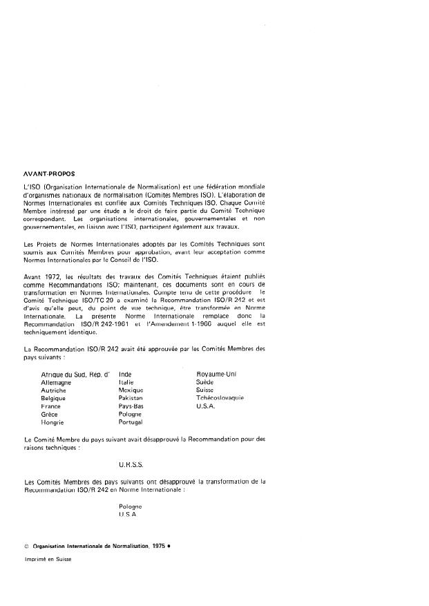 Committee ISO/TC 29 has reviewed ISO Recommendation R 242 and found it