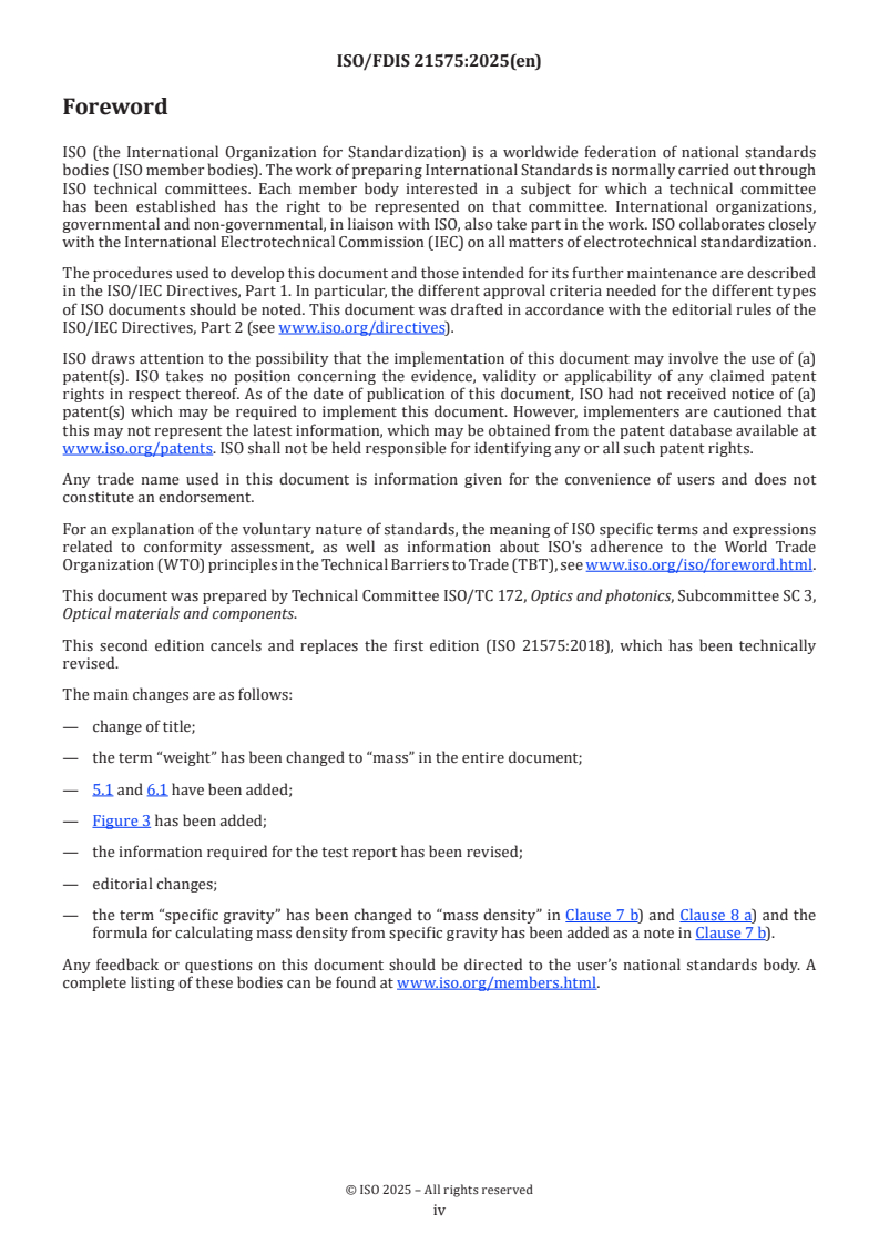 REDLINE ISO/FDIS 21575 - Raw optical glass — Powder test method for the water resistance of optical glass — Test method and classification Released:10/14/2025