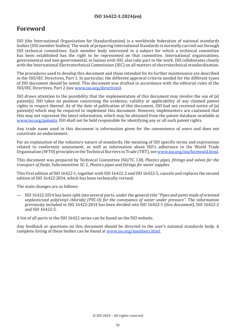 Keywords: ISO 16422-1:2024, PVC-O pipes, oriented unplasticized poly(vinyl chloride), piping systems, water under pressure, MRS, LPL, SDR, design stress.