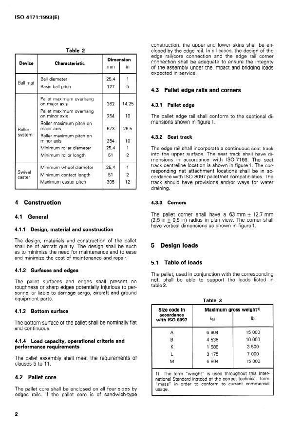 The document establishes dimensional, structural and environmental requirements for pallets used to transport cargo in aircraft using nets meeting the requirements of ISO 4170. Includes design loads, operational criteria, resistance to local indentation, to bridging and resting and to impact loads, ball load capacity, performance on ball units, abrasion resistance for plastic-coated or magnesium-base materials, execution of tests and markings.
