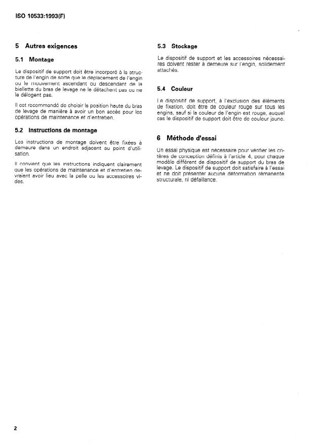 ISO 10533:1993 - Engins de terrassement -- Dispositifs de support du bras de levage