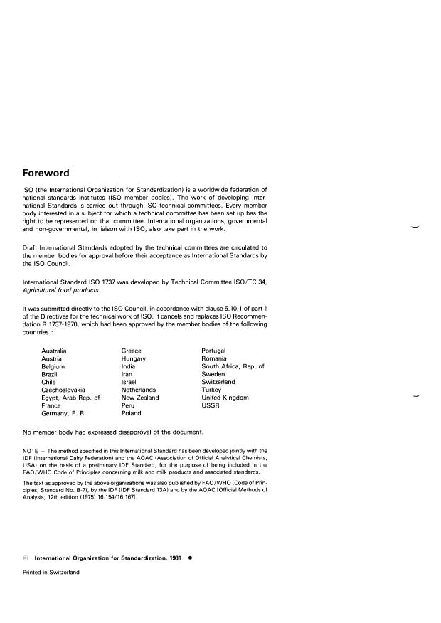 dation R 1737-1970, which had been approved by the member bodies of the following