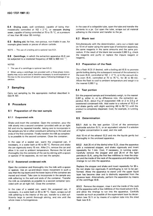 ISO 1737:1981 - Evaporated milk and sweetened condensed milk — Determination of fat content (Reference method) Released:3/1/1981