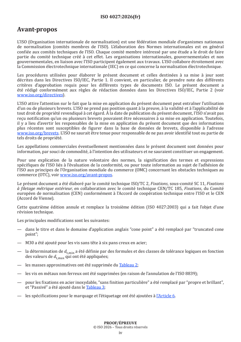 ISO/PRF 4027 - Fixations — Vis sans tête à six pans creux, à bout tronconique Released:14. 01. 2026