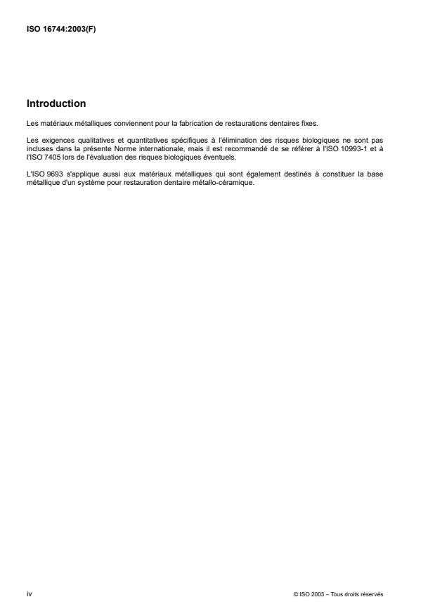 ISO 16744:2003 - Art dentaire -- Matériaux métalliques pour les restaurations fixes