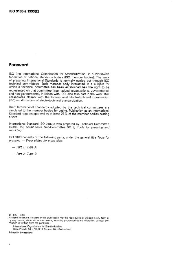 ISO 9183-2:1993 - Tools for pressing -- Wear plates for press dies