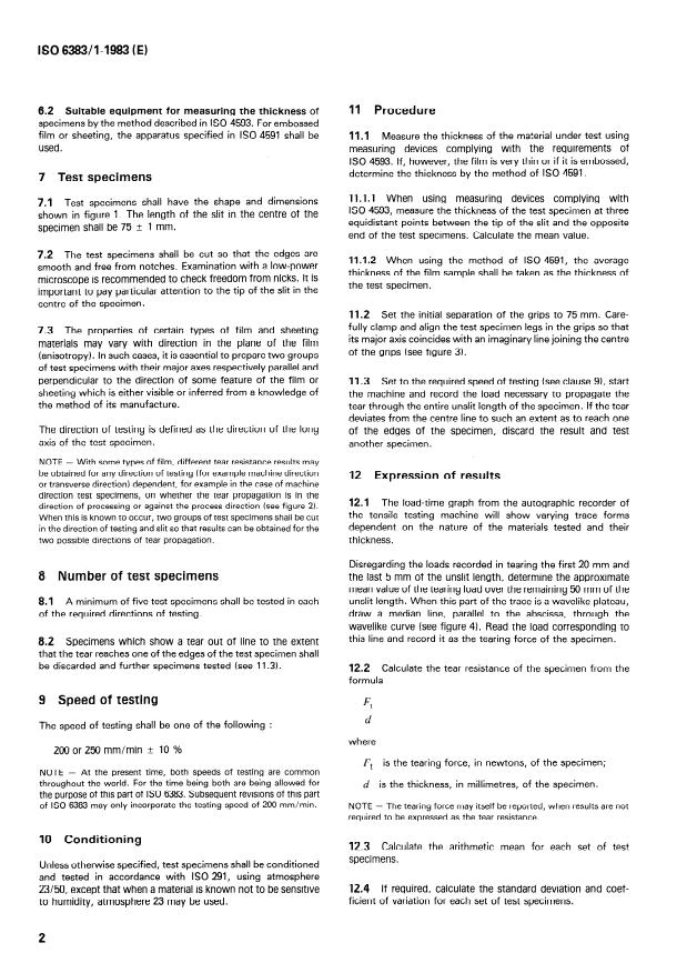 ISO 6383-1:1983 - Plastics -- Film and sheeting -- Determination of tear resistance