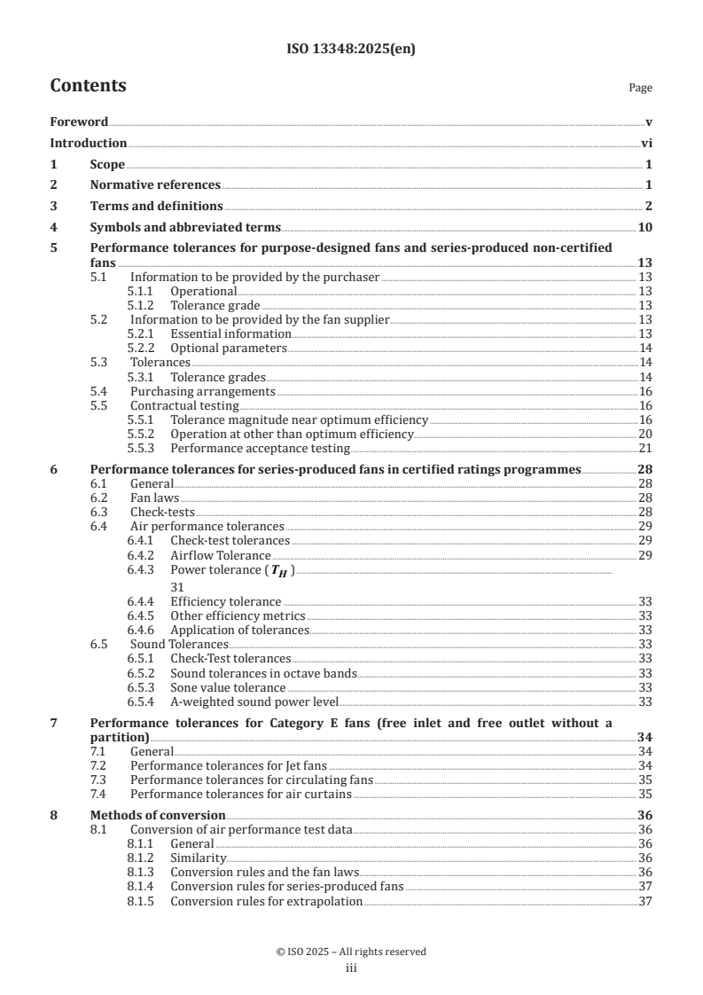 Key phrases: ISO 13348:2025, fans tolerances, technical data presentation, performance tolerances, fan testing, conversion methods, efficiency scaling.