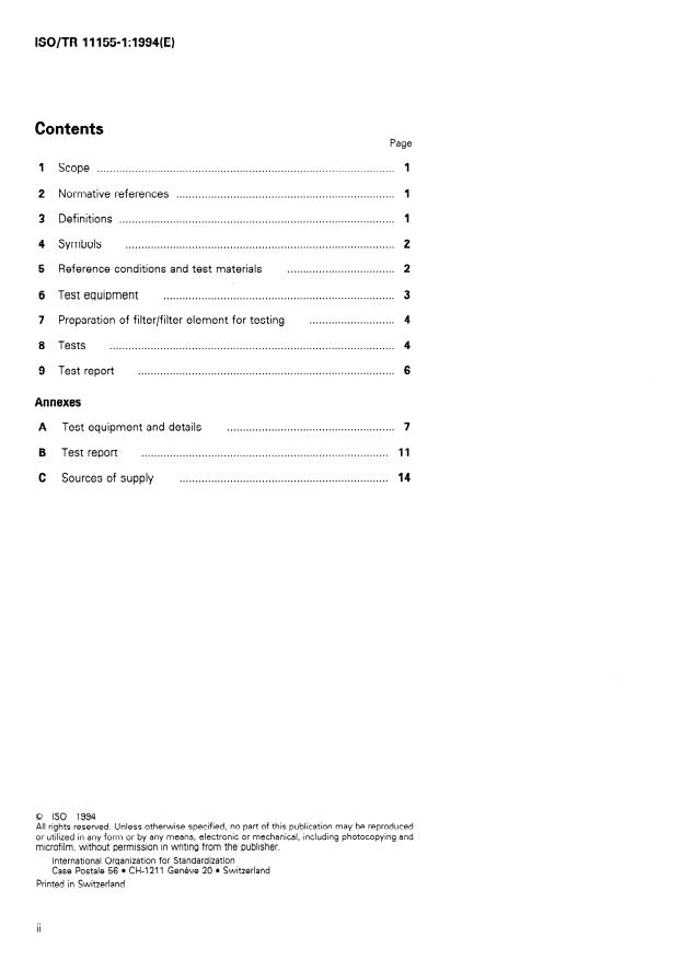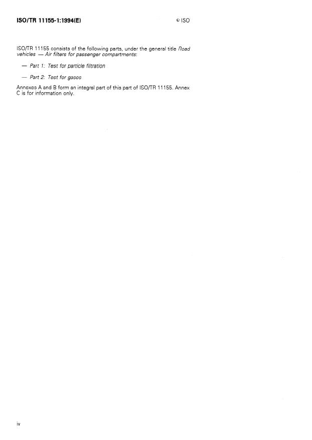 ISO/TR 11155-1:1994 is a technical report published by the International Organization for Standardization (ISO). Its full title is "Road vehicles — Air filters for passenger compartments — Part 1: Test for particle filtration". This standard covers: Specifies assessment criteria in order to permit the selection and comparability of air filters and filter elements under laboratory conditions. Applies to air filters used in motor vehicles to remove dust particles from the external air or recirculated air for the passenger compartment. The tests provide information on pressure differences, the filtration rate and fractional filtration rate, as well as the dust-holding capacity of a filter.