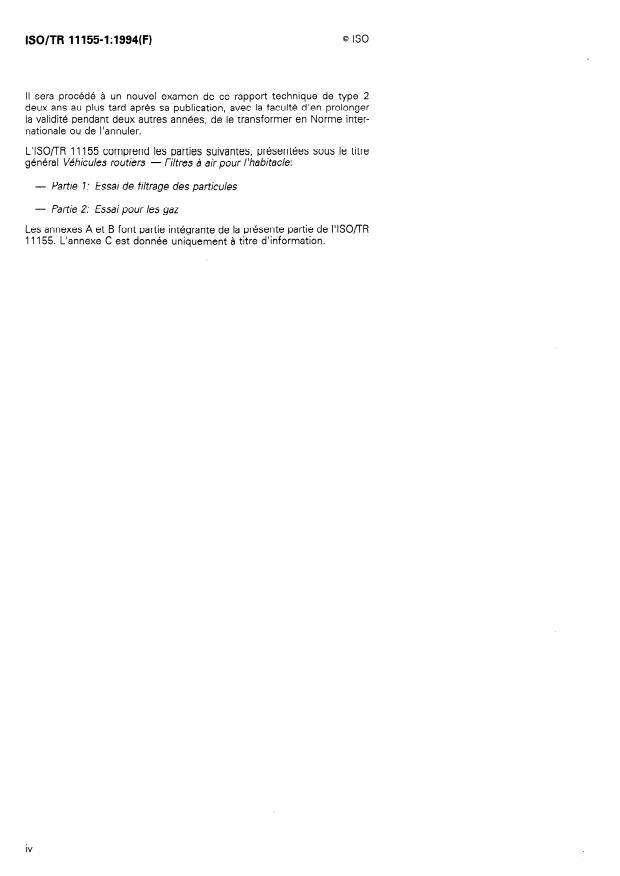 ISO/TR 11155-1:1994 - Véhicules routiers -- Filtres a air pour l'habitacle