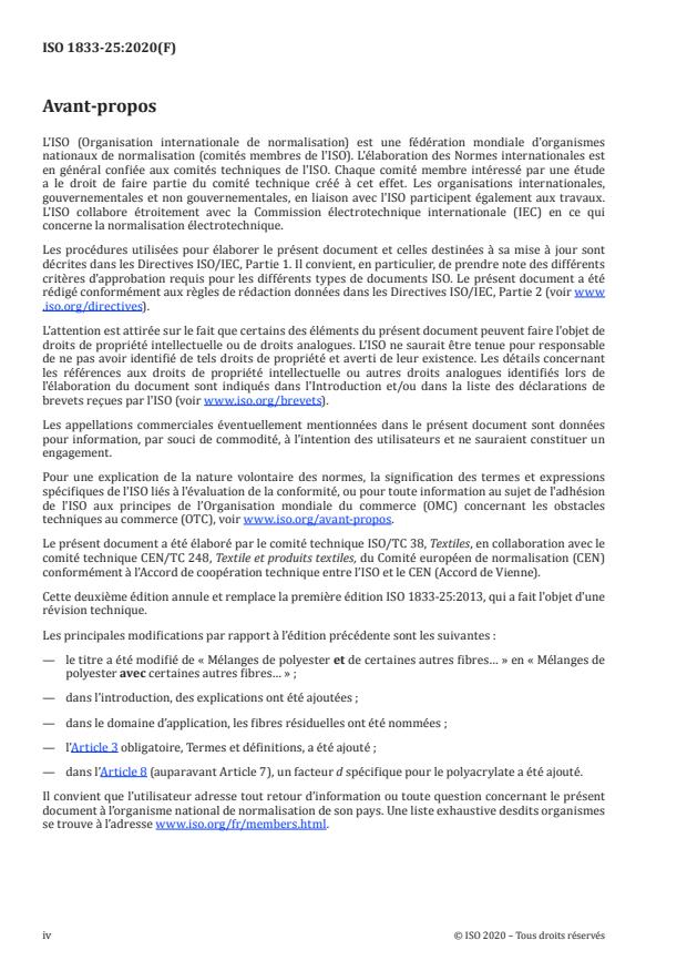 Cette deuxième édition annule et remplace la première édition ISO 1833-25:2013, qui a fait l'objet d'une