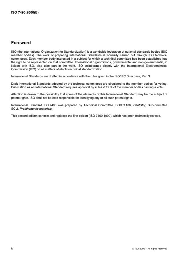 La Norme internationale ISO 7490 a étéélaborée par le comité technique ISO/TC 106, Art dentaire, sous-comité