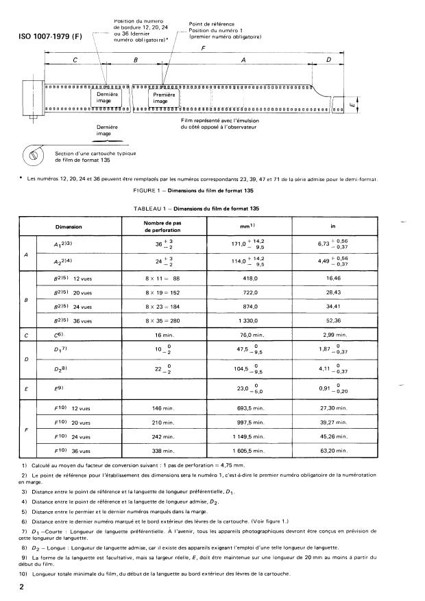 TABLEAU 3 - Dimensions de la cartouche pour film de format 135