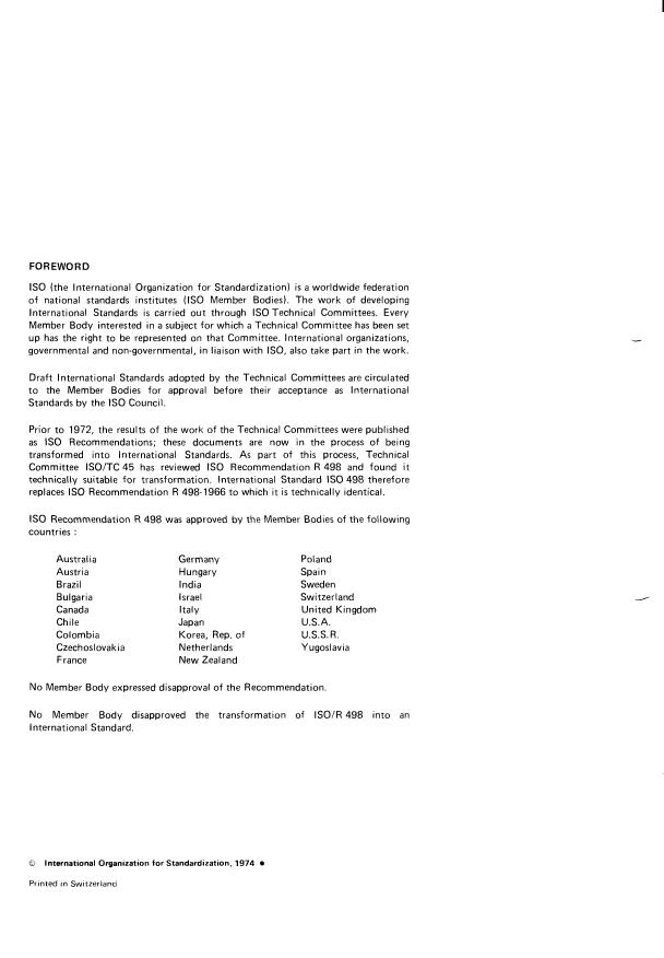 Committee ISO/TC 45 has reviewed IS0 Recommendation R 498 and found it