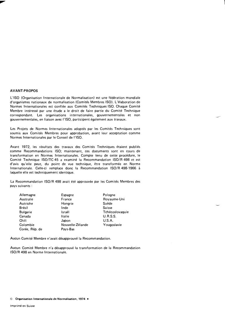 La Recommandation ISO/R 498 avait été approuvée par les Comités Membres des