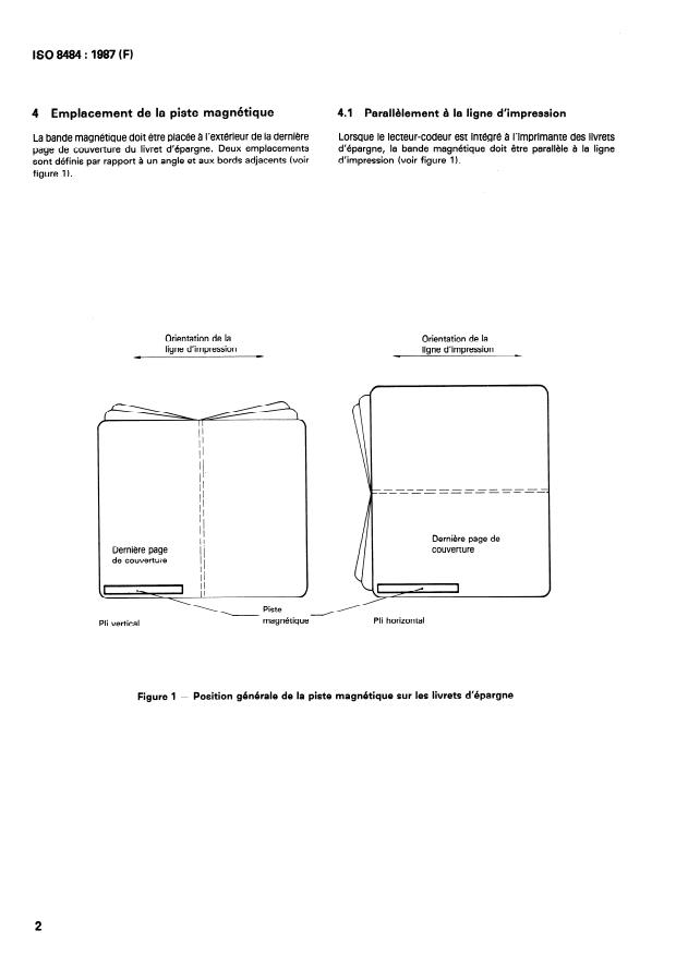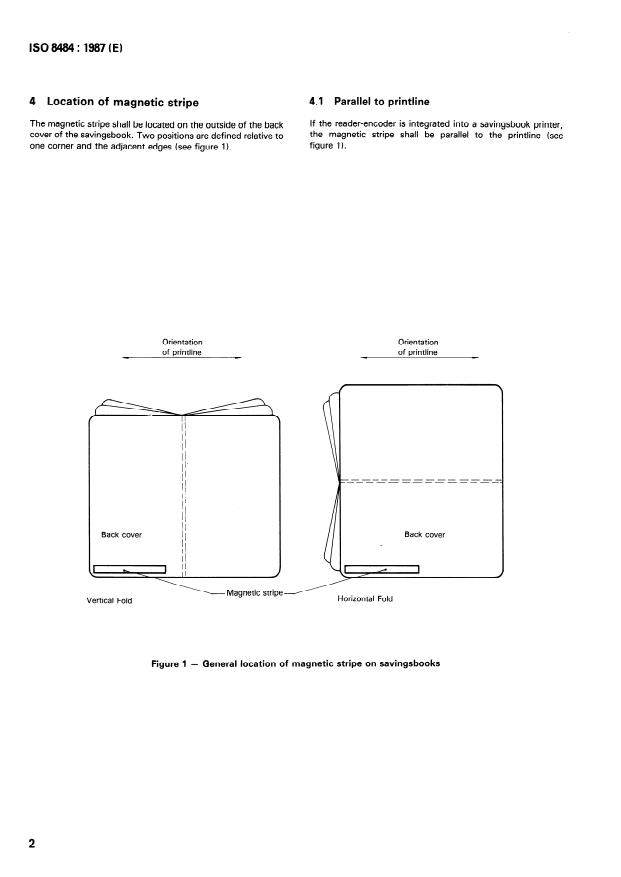 ISO 8484:1987 is a standard published by the International Organization for Standardization (ISO). Its full title is "Magnetic stripes on savingsbooks". This standard covers: Specifies the location, dimensions, electromanetic properties, recording characteristics, character coding and character set of magnetic stripes on savingsbooks used in interchange. Describes features of the savingsbook cover i.e. stiffness, minimum dimensions, surface irregularities, roughness as well as the interaction between cover material and magnetic stripe. References: ISO 7811-2 and -5, TAPPI T489 os-76.