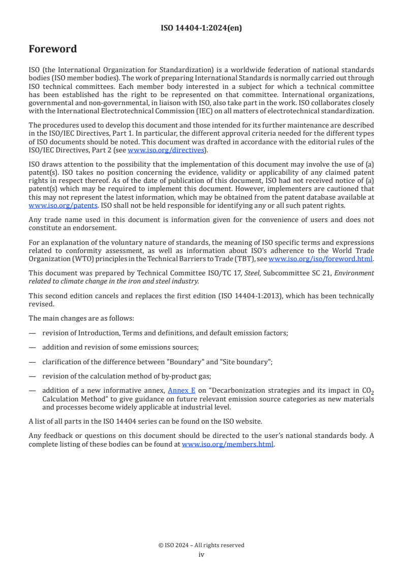 ISO 14404-1:2024 - Calculation method of carbon dioxide emission intensity from iron and steel production — Part 1: Steel plant with blast furnace Released:16. 09. 2024
