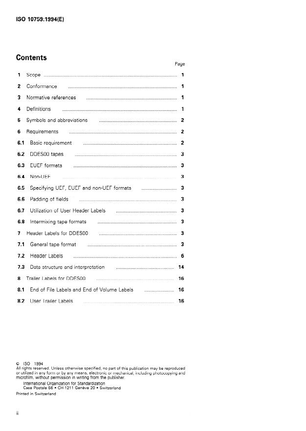 ISO 10759:1994 is a standard published by the International Organization for Standardization (ISO). Its full title is "Graphic technology — Prepress digital data exchange — Monochrome image data on magnetic tape". This standard covers: Specifies a format (requirements, header labels for DDES00, trailer labels for DDES00) for magnetic tape that will enable monochrome image data transfer between colour and monochrome electronic prepress systems manufactured by different vendors.