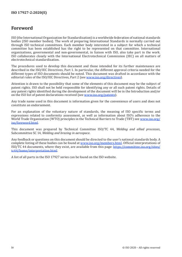 Keywords: ISO 17927-2:2020, aerospace welding standard, fusion welding acceptance criteria, weld inspection, porosity limits, lack of fusion, fillet weld requirements, titanium discolouration.
