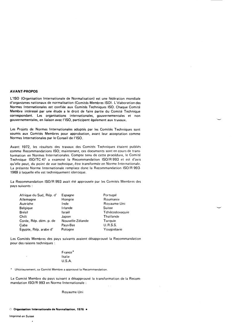 ISO/TC 47 has reviewed IS0 Recommendation R 993 and found it technically
