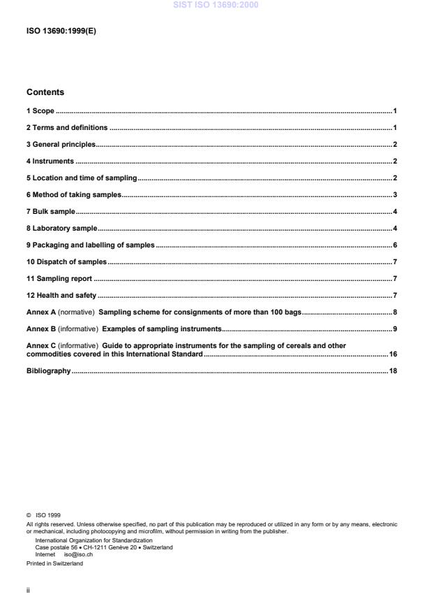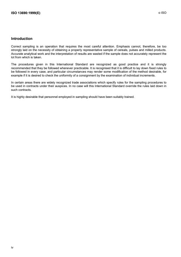 ISO 13690:1999 - Cereals, pulses and milled products -- Sampling of static batches